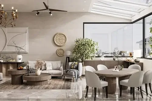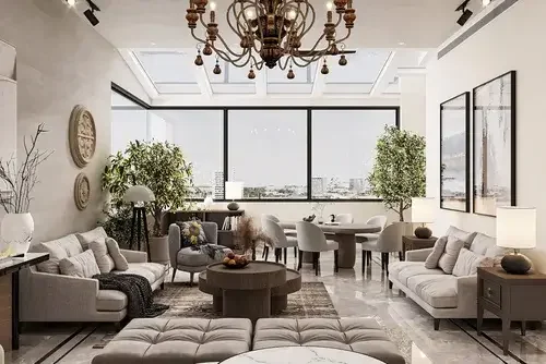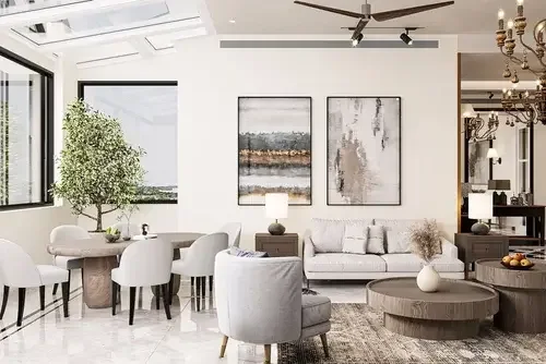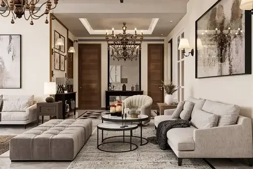 Modern interior design embodies a sense of sophistication and elegance through its clean, simple lines and minimalistic approach. Space and functionality are of utmost importance in this style, as evidenced by the uncluttered design and focus on a calm aesthetic, rather than an overabundance of glamour or flashy, ornate details.