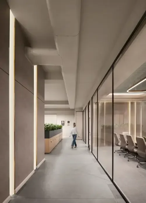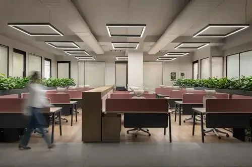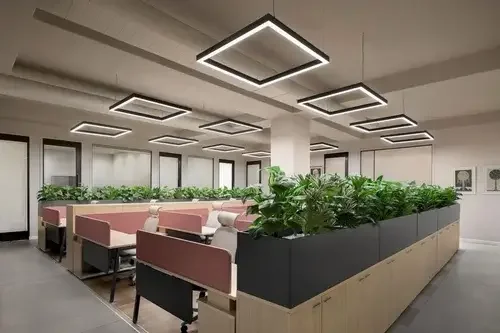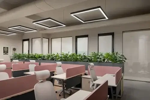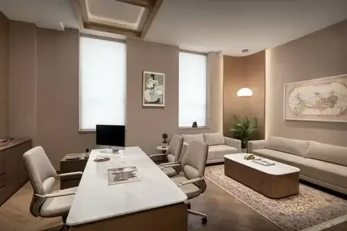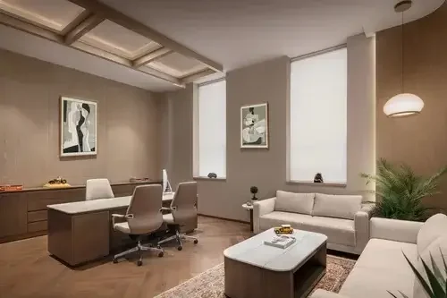 Experience a fusion of timeless elegance and contemporary design at our office. Discover seamless floorings, pastel shades, modern art, and green plants that infuse our space with natural beauty. With hard wood flooring and double-height ceilings, our well-planned layouts and lighting create an atmosphere that inspires creativity and productivity.